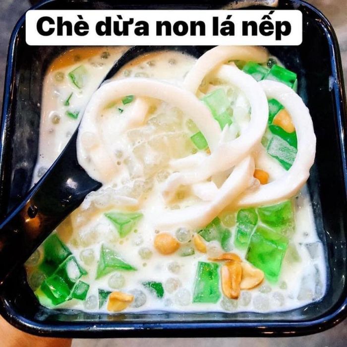 The Thai banana dessert, once cooked, should have a deep golden color, topped with a small amount of coconut milk. The chewy Thai noodles, soft and sweet banana pieces, and the fragrant coconut milk create a rich, unforgettable flavor. You can enjoy this dessert at the shop while listening to the soulful voices of singers like Giao Linh and Khánh Ly, reminiscing about times long past. Alternatively, you can have it delivered and enjoy it at home, chilled and ready to indulge in. Don’t miss out on trying the Thai dessert at Chè no ông Trình.