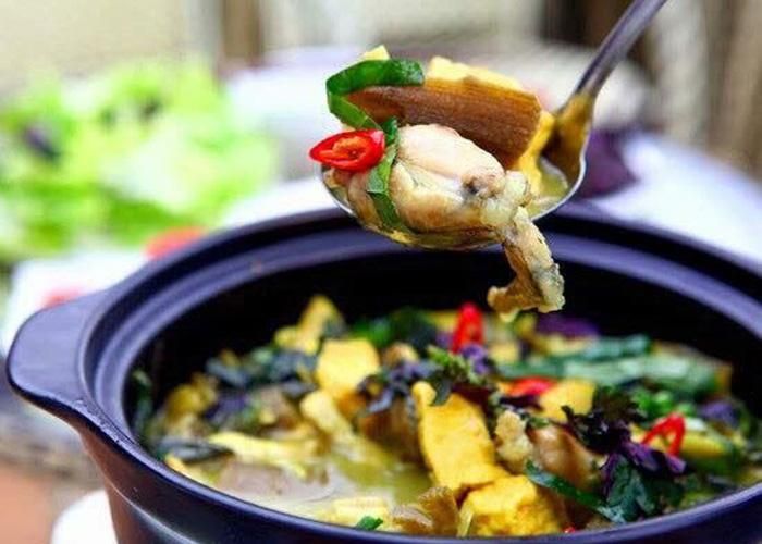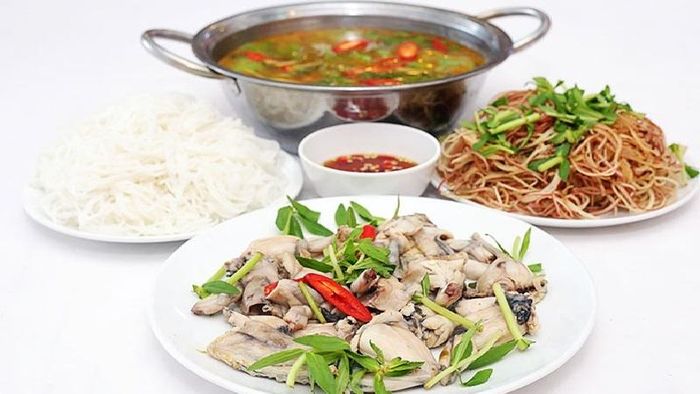 The delightful flavor of frog hot pot with river leaves, accompanied by tender and sweet frog meat, combined with fresh and crunchy vegetables, will surely provide you with a delicious and nutritious meal.