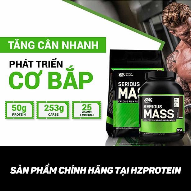 Serious Mass 6lbs weight gain milk by Optimum Nutrition is a nutritional bodybuilding product for skinny individuals who want to gain weight or for those who exercise in the gym to achieve quick weight gain. The product is currently available in Vietnam.