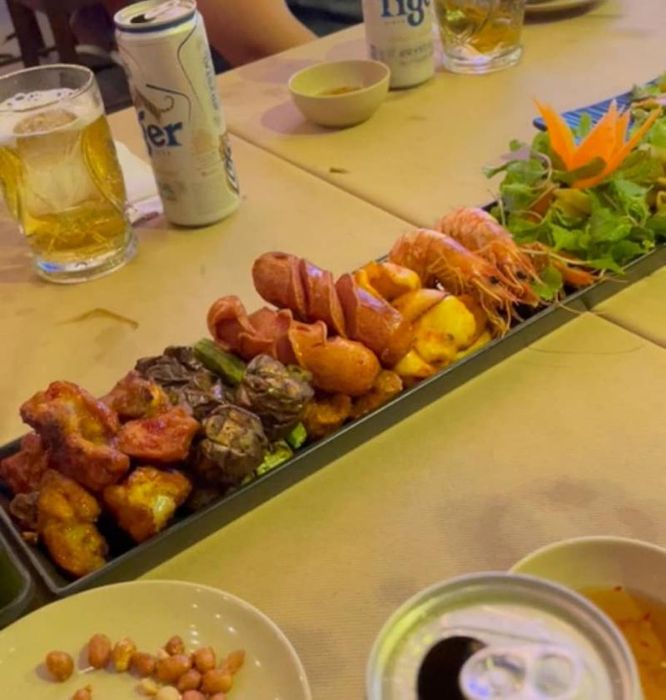 Bếp Lò is a popular street food spot combined with a modern beer bar, making it the perfect place to enjoy drinks with friends. The restaurant is busiest during dinner hours, when the sidewalk fills with young people happily gathered around the grill. Bếp Lò offers a wide variety of menu options, including Australian beef combos, grilled meat combos, seafood combos, and Thai-style seafood dishes, with affordable beer prices compared to the average. Each dish is prepared with a unique recipe, allowing the flavors to shine. The spacious indoor seating area is beautifully decorated and provides a clean, bright atmosphere. With its open, airy, and inviting ambiance, Bếp Lò is ideal for both casual hangouts with friends and family gatherings. The simple wooden furniture blends well with the greenery, creating a cozy, welcoming vibe. The quick and polite service ensures that even when the place is busy, guests will have a pleasant experience.
