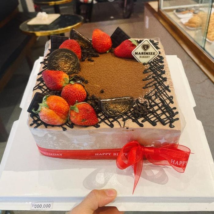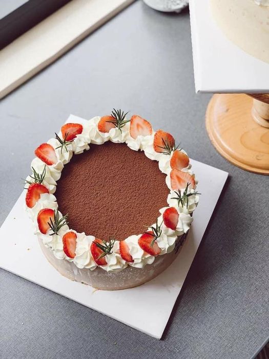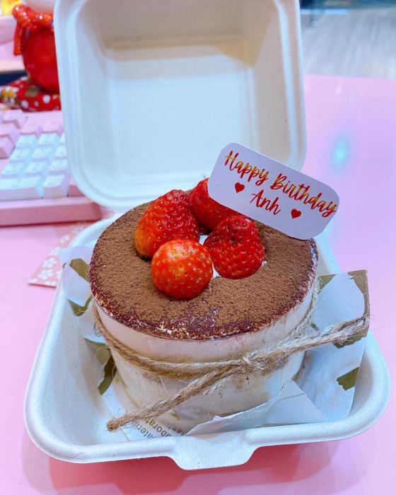 Round Pan Bakery offers both whole cakes and small boxed versions, allowing customers to choose according to their preferences. The whole cakes are beautifully decorated with fresh strawberries, adding a burst of flavor. The strawberries are carefully selected, juicy, and ripe, complementing the cake's taste perfectly. A small boxed cake is priced at 50,000 VND, which is a standard and affordable price for Tiramisu cakes, considering the quality.