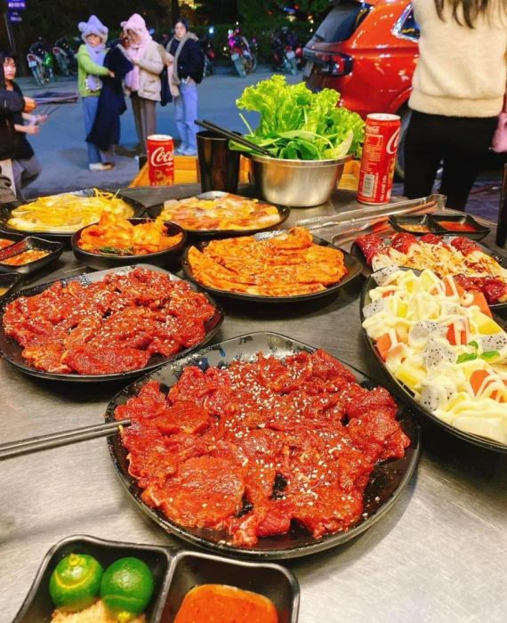 BBQ Tra Phuong Quan offers a Korean-style BBQ experience with a street food vibe, all at very affordable prices while still keeping the authentic flavors intact. At BBQ Tra Phuong Quan, guests can enjoy a variety of set meals and buffet combos at incredibly reasonable rates. The buffet of grilled and hot pot dishes is priced similarly to street food stalls, but with the comfort of a fully air-conditioned restaurant that also has powerful odor-extraction systems. The outdoor seating area offers a refreshing breeze from the Red River, making it the perfect spot to enjoy BBQ in the fresh air without worrying about the smog and traffic noise.