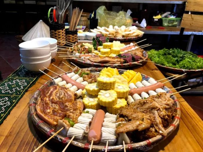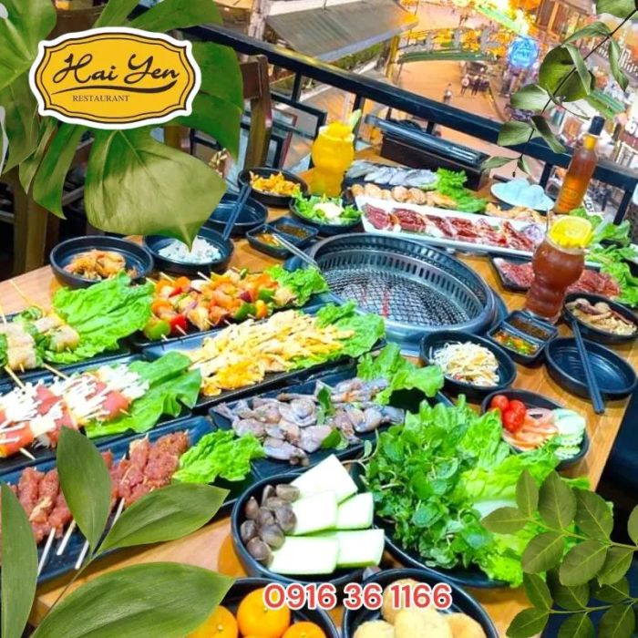 Buffet Grilled & Hotpot North West 199k - Hai Yen Sa Pa is a newly opened restaurant in Sapa that has quickly won the hearts of locals and visitors alike. The restaurant offers a wide range of delicious dishes and boasts a beautiful, clean, and spacious atmosphere perfect for group gatherings and family meals. The buffet menu features over 60 distinctive dishes with the flavors of North West Vietnam, and the selection changes daily for customers to enjoy.