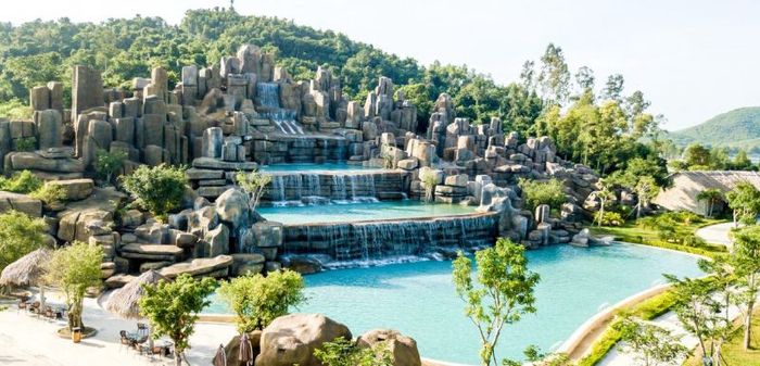 - The resort is a complex including: 5-star and 3-star hotels, luxury golf villa area, international standard 18-hole Golf course, and a beach entertainment area stretching over 1.2 km along the coast with an area of 133 hectares. It boasts over 700 rooms equipped with luxurious furniture, unique design with spacious swimming pools, and tennis courts.