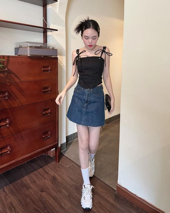 And denim skirts at Miều Fashionista are among the products that many female customers are interested in, because of their affordable prices and minimalist designs that make it easy for women to mix and match with different outfits, creating a variety of choices.