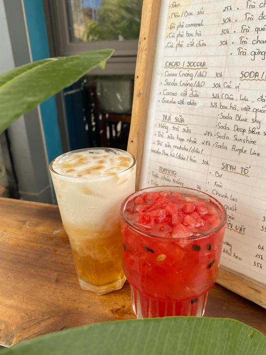 The café offers many picturesque corners, and the drinks are delicious with a variety including coffee, coconut coffee, iced coffee, smoothies, fruit juices, all priced from only 35,000 VND. With such affordable prices, you can have a tasty drink and utilize the café's corners to capture a nostalgic and dazzling photo!