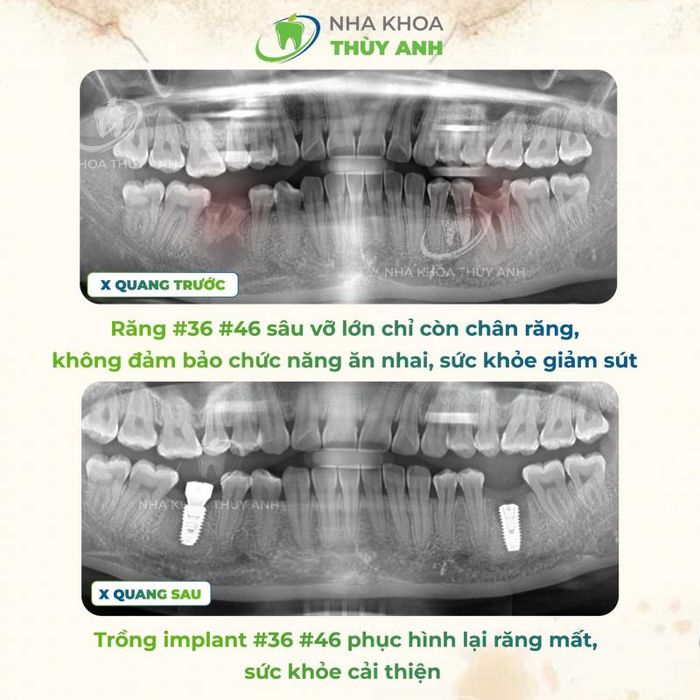 For cases of customers losing 1 - 2 teeth, the dental clinic will proceed to implant each tooth conventionally. However, for cases of complete tooth loss, the dental clinic will perform All on 4 or 6 Implantation.