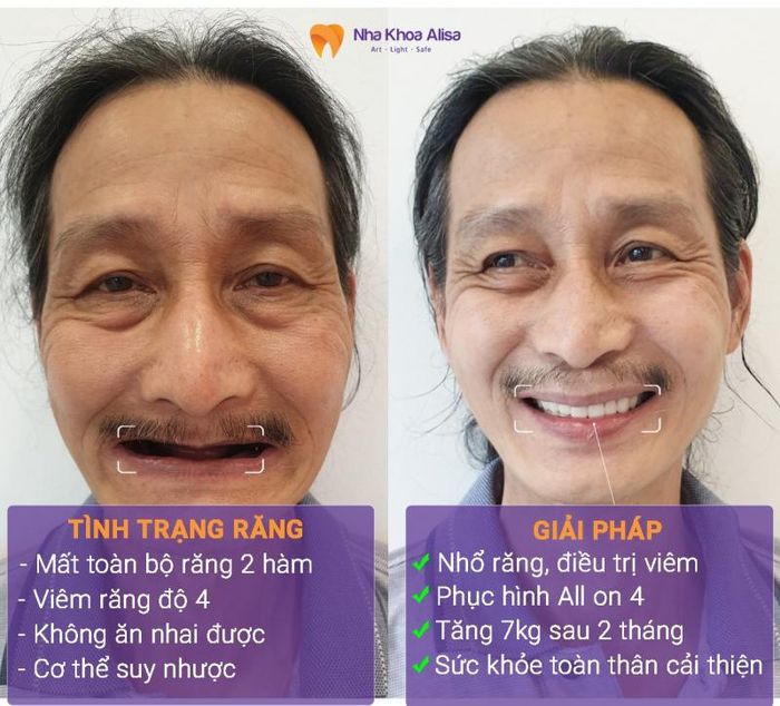 With experience and modern implantation technology support, Alisa Dental Clinic can handle both common and complex Implant cases. Especially for cases of older adults who have lost teeth for a long time, lost many teeth, and lost all teeth.