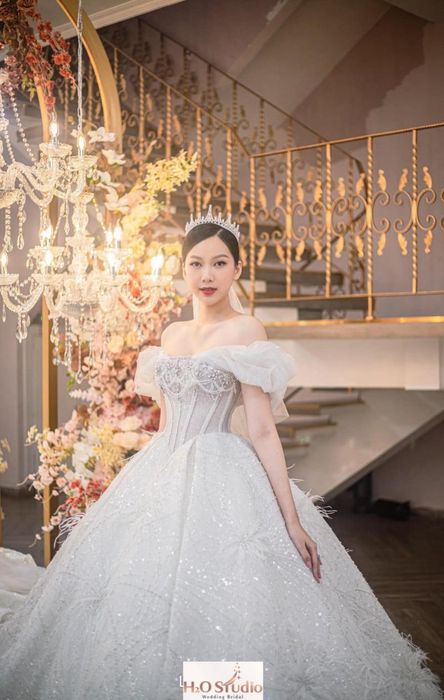 The studio continuously introduces new wedding dress collections each season, ranging from delicate and innocent to glamorous and captivating. You'll undoubtedly be amazed witnessing the masterpieces from H2O Studio. Every detail is meticulously crafted, making the bride truly stand out.