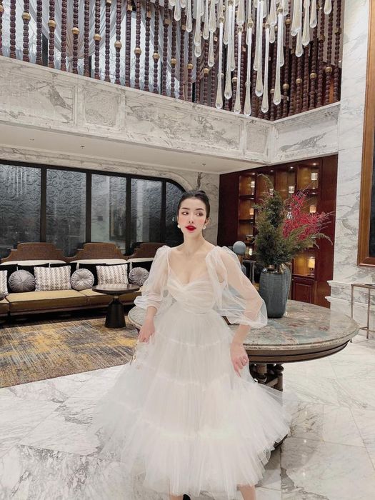 For fashion lovers in Hanoi, Ngọc Duyên is a well-known name. Her boutique, "Ngọc Duyên Boutique", has become a favorite among shoppers. A graduate of the Hanoi Academy of Theatre and Cinema, Ngọc Duyên chose not to pursue acting and instead ventured into fashion. This shift has been highly successful, bringing in a significant income each month. Undoubtedly, her glowing appearance and impressive fashion sense have played a key role in the success of her business. The clothing designs she wears often sell out quickly, with her signature dresses being sexy, youthful, form-fitting, and body-flattering.