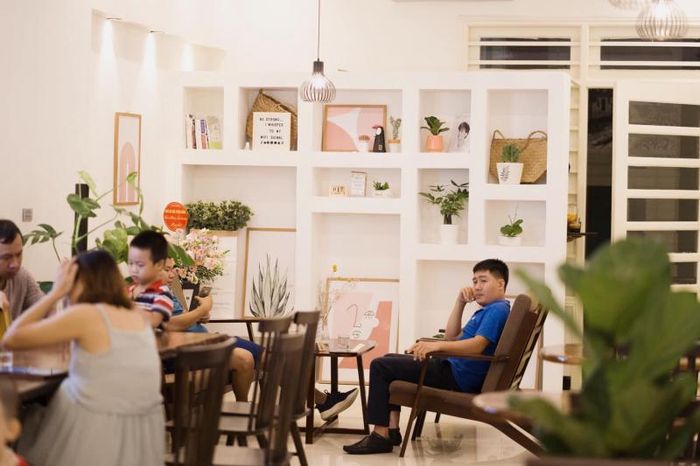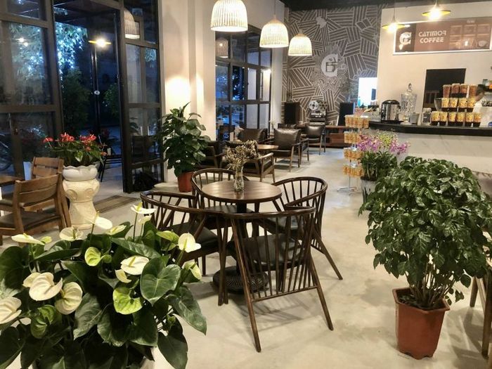 The color scheme of Catimor Coffee exudes an aura of refinement, blending white and gray tones to create a dreamy, cozy ambiance throughout the venue. Couples planning a Valentine's Day rendezvous on February 14th can immerse themselves in the beautiful setting, savoring a cup of coffee while contemplating matters of the heart. As night falls, Catimor Coffee is adorned with vintage lights, enveloping the space in a serene atmosphere. The attentive and accommodating staff further enhances the cafe's charm, attracting a steady stream of customers without the need for extensive advertising. Visit Catimor Coffee for an unforgettable experience.