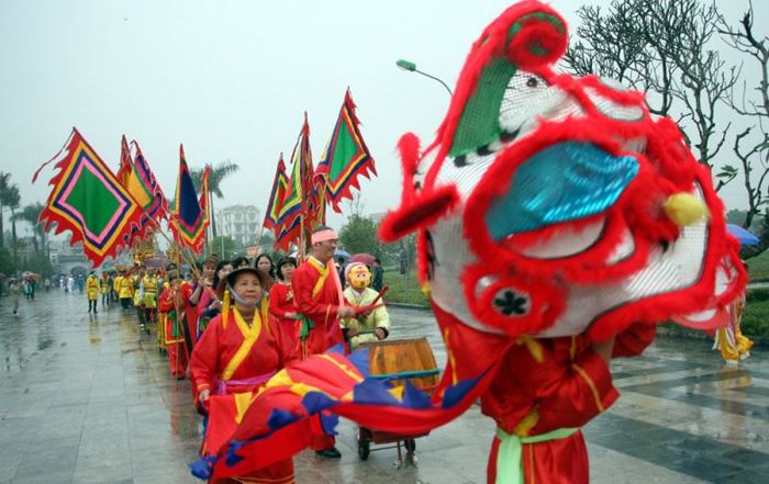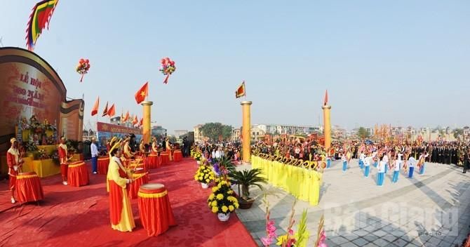 The festival takes place on the 6th and 7th of the Lunar New Year. It is a major event that attracts attention nationwide. The festival features procession groups from temples, shrines, and communal houses from across the region. These processions from villages like Kế, Thành, Yên Hòa, and Đa Mai all converge at the central festival grounds where the flag-raising ceremony, reading of the "Đại cáo bình Ngô" (Proclamation of the Victory), and military parade are held. After the formal ceremonies, the villages of Thành and Vẽ host their own local festivities, featuring traditional games such as Chinese chess, Chèo singing at the pagoda, incense offerings, and rituals to honor local deities...