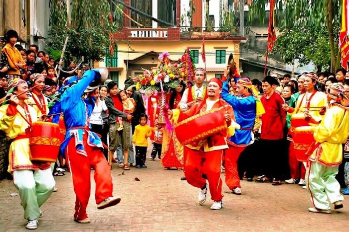 The festival is divided into two main parts. The first part is the grand procession, a well-organized and ceremonial event to welcome the deity to join the villagers in the celebration. People pray for blessings of health, prosperity, and happiness for their families and community in the coming year. The second part features traditional folk games such as cock fighting, boat racing, wrestling, chess playing, and duck catching. However, the highlight of the festival is the performance of Quan Họ singing, a traditional folk art of the region. The Thổ Hà Temple Festival has become a proud cultural tradition for the people of Bắc Giang and continues to enrich Vietnam's cultural heritage.