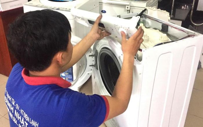 Our washing machine repair process at Dinh Nhat Refrigeration includes: