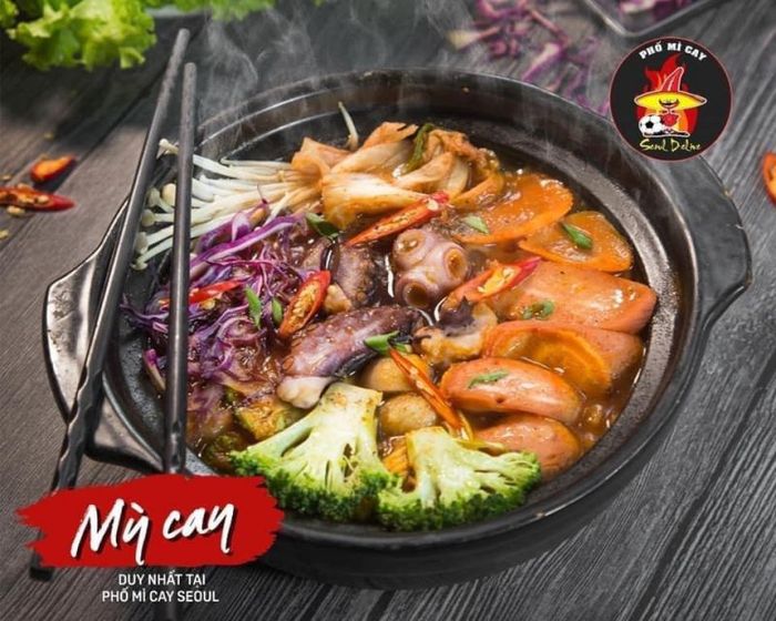 Spicy Noodles Boong Cha offers 7 levels of spicy noodles made from delicious Korean noodles combined with shrimp, squid, beef, kimchi, and spicy Korean chili, giving spice enthusiasts a delightful and flavorful experience that suits their taste buds. The broth is delicious and balanced, skillfully crafted to explode with spice without bitterness, while the seafood and fresh meat create a characteristic sweet and savory taste. In Pleiku, if you crave spicy noodles, just think of Spicy Noodles Boong Cha. Overall, the restaurant has a spacious and comfortable atmosphere, and the spicy noodles here meet the standard of spiciness, perfect for those who love spicy flavors.