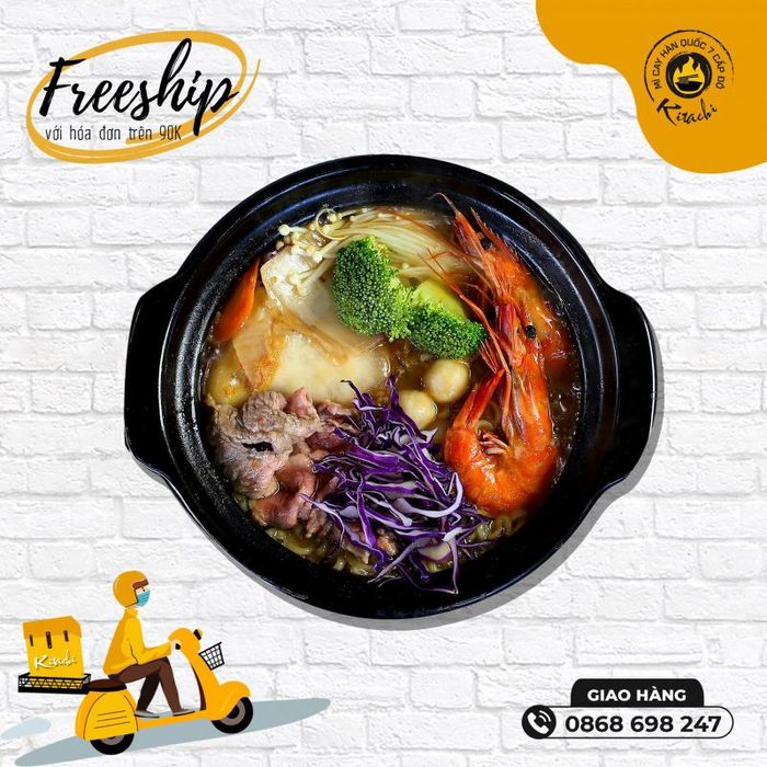 At Seven Spot, the first dish you must try is the spicy noodles. This dish is highly favored by many diners nowadays. The Korean spicy noodles here boast a very diverse menu, combined with many delicious ingredients, allowing you to freely choose according to your preferences, such as: beef kimchi noodles, octopus kimchi noodles, seafood kimchi noodles, crab kimchi noodles, beef roll with mushroom kimchi,... The broth is flavorful, combined with the spicy aroma of kimchi, the sweet and savory taste of seafood and other ingredients, creating an excellent bowl of spicy noodles. The chewy and fragrant noodles blend perfectly with the flavorful broth, leaving a memorable taste for diners.