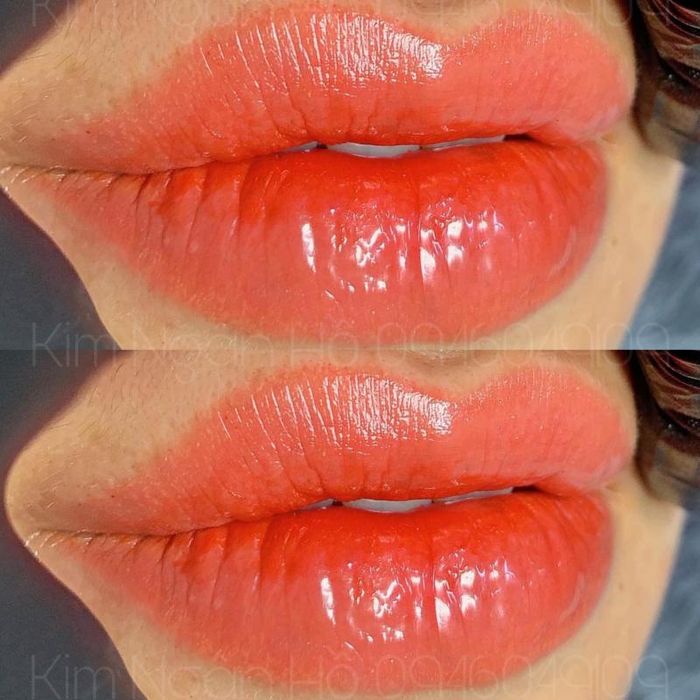 Mộc Vân Cosmetic Tattoo Studio offers various lip tattoo techniques, including collagen-infused lip tattoos, herbal lip tattoos, candy lip tattoos, and stem cell collagen lip tattoos. After the procedure, the lips look youthful, sweet, and natural, as if wearing lipstick. The color appears vibrant and fresh, with no dark spots or unevenness. Right after the tattoo, the lips may feel slightly tight, and the color will be darker and shinier. As the healing process completes, the color will settle into the client's preferred shade.