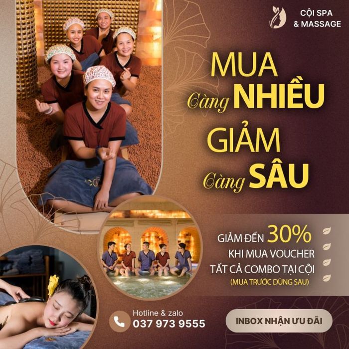 Call NowCội Spa & Massage is located at 21 Nguyễn Sinh Cung, Hue. It offers two main services: sauna and massage. The Korean-style sauna includes 6 rooms, offering options such as wet sauna, dry sauna, Himalayan salt, herbal, clay, and infrared caves with five variations: Vietnamese, Thai, essential oils, hot stone, and herbal. In addition, customers can experience herbal baths, Red Dao medicinal leaves, and full-body exfoliation services.