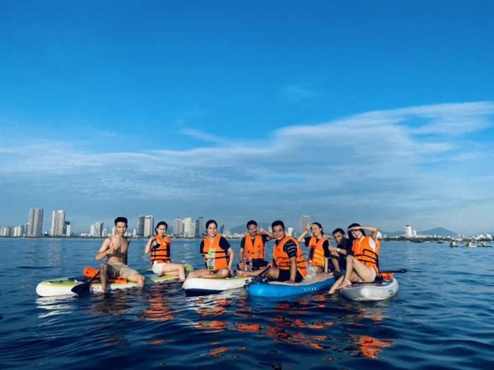 In particular, Camping SUP Da Nang is highly appreciated by many customers for its high-quality accompanying services. For example, when renting SUP, you will receive free drinks, free waterproof phone pouch, free diving goggles to see coral reefs, free parking, changing clothes... Besides, Camping SUP Da Nang has enthusiastic guides who closely accompany guests and especially take super thoughtful photos for guests. Along with that, the company also provides rescue boats to ensure safety for guests participating in activities. And if you have never experienced this sport before, don't worry, you will be carefully instructed before starting.