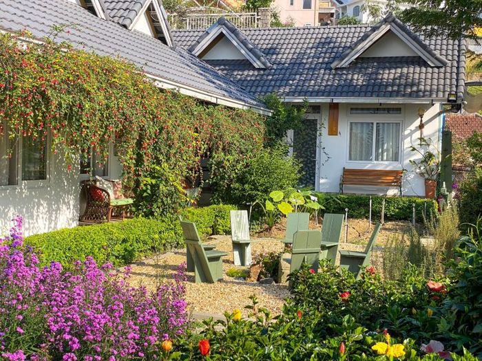 Inspired by the famous wine cellars of Da Lat, Wine Valley Homestay is an inviting retreat that attracts many visitors. The rooms are built with concrete exteriors resembling wood, and are spread across two to three levels of varying sizes. The homestay's green landscape, abundant with trees and flowers, creates a calming and refreshing atmosphere. With its wood-based design, the space offers a nostalgic yet contemporary vibe, making it a perfect spot for beautiful photos and relaxation. At Wine Valley Homestay, surrounded by nature, you’ll find the peace and energy needed to face life’s challenges and embrace a simple, balanced lifestyle.