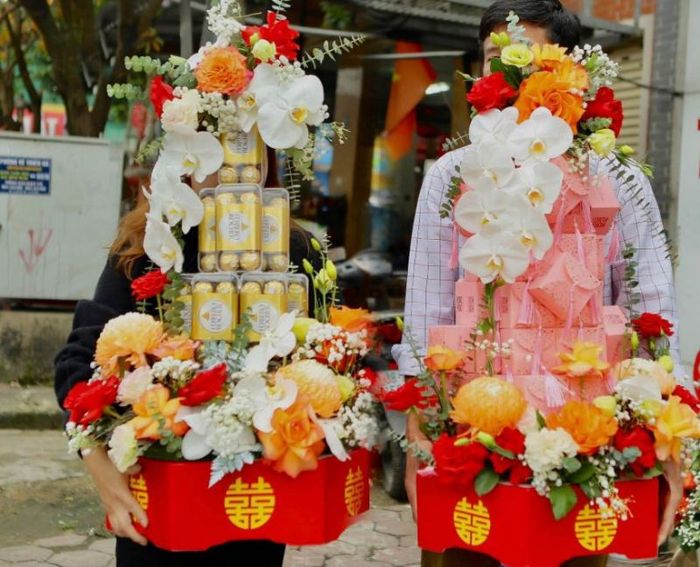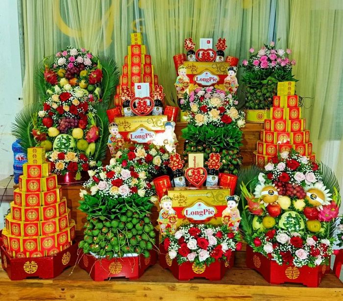 Call NowThe engagement ceremony is a traditional ritual before officially entering the wedding ceremony in Vietnamese culture. This is the day when the groom's family brings engagement gifts to the bride's house to formally request her as the daughter-in-law and announce to the officials, relatives, and friends about the upcoming wedding. Among them, the engagement arch holds the meaning of happiness and expresses the sincerity of the groom's family, offering to ancestors and announcing and recording for the couple's marriage. Therefore, the engagement arch needs to be prepared, decorated, and arranged adequately, politely, and solemnly. Depending on the economic conditions of each family, the engagement arch may be prepared more or less, but it usually includes five basic arches: areca nut and betel leaf arch, com cake and bridal cake arch, fruit arch, tea and wine arch. In addition, the groom's family can bring additional offerings such as sticky rice, chicken, roasted pig symbolizing prosperity, luck, vitality, and precious sons...
