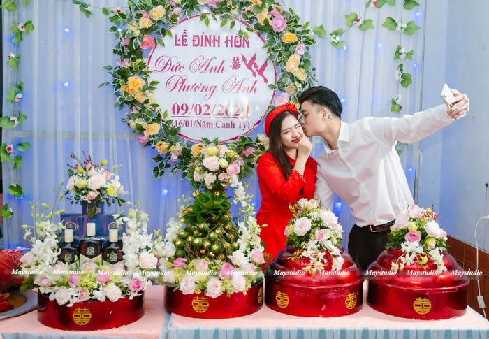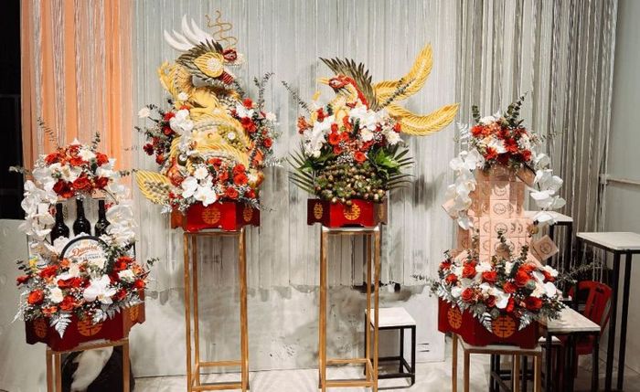 Today, with improved economic conditions for most families, engagement trays are highly emphasized for both the quality of ritual items and the decoration. Some families even request dragon and phoenix-themed engagement trays to enhance the elegance of the couple on this auspicious day. Arranging engagement trays not only requires knowledge of wedding customs but also demands precision, care, and a stylish touch to create trays that align with traditions, are of high quality, and visually appealing. Hence, visit Khắc Đồng Studio to get the most beautiful and meaningful engagement tray.