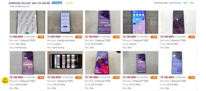 Meanwhile, Galaxy S20+ on exchange has a price starting from just over 11 million VND at The Gioi Di Dong stores, but it's worth mentioning that this is a used product, possibly with scratches, and the warranty period is shorter.