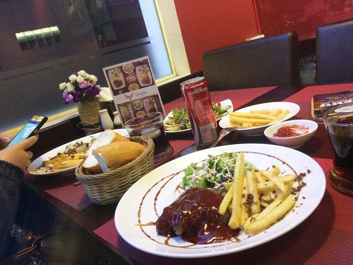 The menu at Lavache Steak is very diverse, not only steak but also other fast food dishes like pasta, mashed potatoes, grilled ribs,... all have very distinctive flavors. Besides, you can order set meals, where the chef will decorate the dishes according to the theme of the set. For example, if you order the Love Paradise set, the steak served will be elaborately decorated with a love theme, very romantic and sweet.