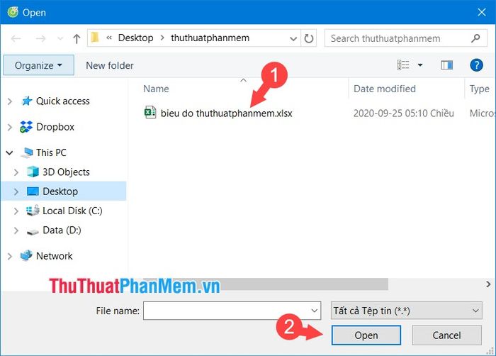 Step 2: A new notification window will appear; choose As shown on screen (1) => Picture (2) => OK (3).