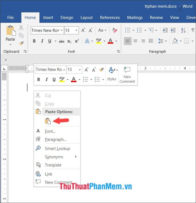 Step 3: Open Word, right-click on the screen, and select Paste.
