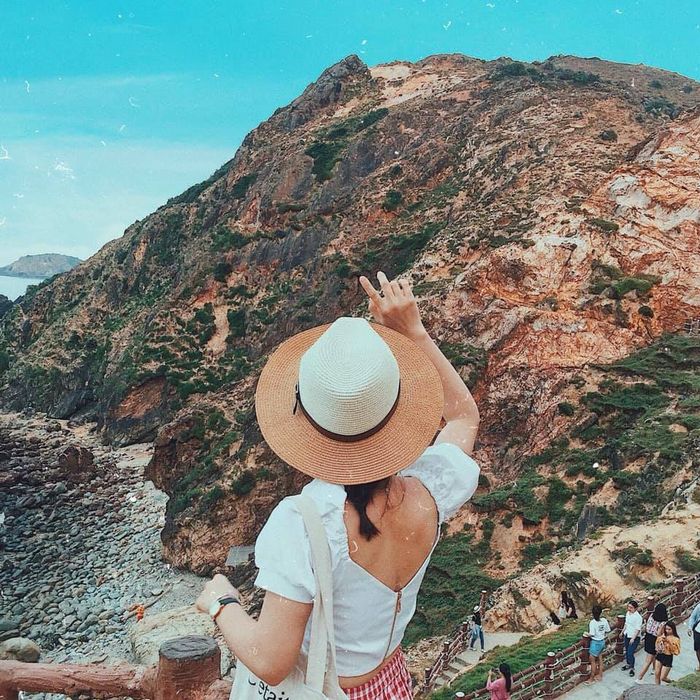 Hòn Khô Island: Located about 16 km from Quy Nhơn, Hòn Khô Island acts as a giant screen protecting the Nhơn Hải fishing village. During the rough sea season, Hòn Khô welcomes large waves with white foam, resembling fantastical sea flowers. In the calm sea season, Hòn Khô is charming, inviting tourists with lush green grass and fresh water cracks from the cliffs.