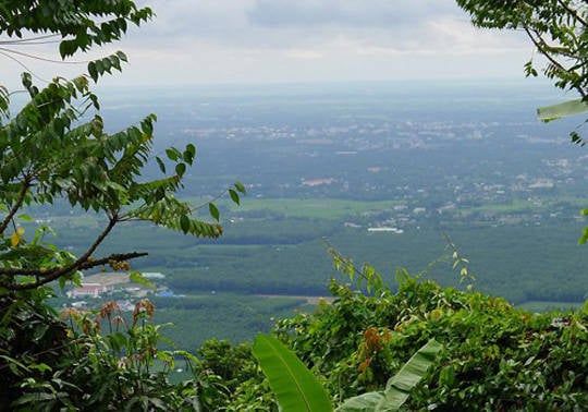 Mount Ba Den, the highest mountain (986m) in Southern Vietnam, is situated in Thanh Tan commune, Hoa Thanh district, Tay Ninh city, Tay Ninh province. It is 11km northeast of Tay Ninh city and 110km from Ho Chi Minh City. The name of the mountain originates from the legend of Ly Thi Thien Huong, a beautiful girl with honey-like (ba den) skin.