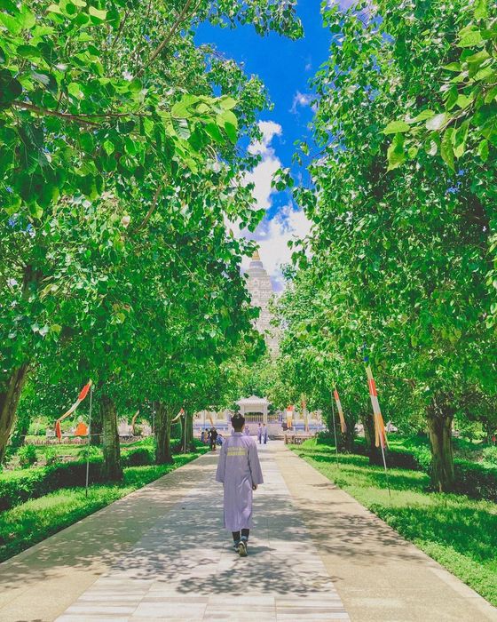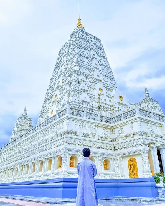 The most beloved photo spot, making the temple dubbed as 'little India,' is the main tower of the Meditation Monastery. This tower boasts a pristine white color, standing out prominently in the distance. The white paint layer enhances its majestic appearance. Alongside are intricate details and carvings on the exterior, making the tower even more beautiful and grandiose.