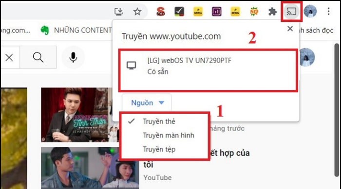 Step 3: Access the source you want to share => Choose the TV name you want to cast to, and you're done.