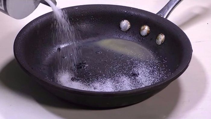 Stubborn burnt residues on pans are often hard to clean, taking up a lot of time with unsatisfactory results. In such cases, add a little salt to the pan, pour water to cover it, and let it soak for 20 minutes. Afterward, clean the pan as usual, and the burnt residues can be easily removed.