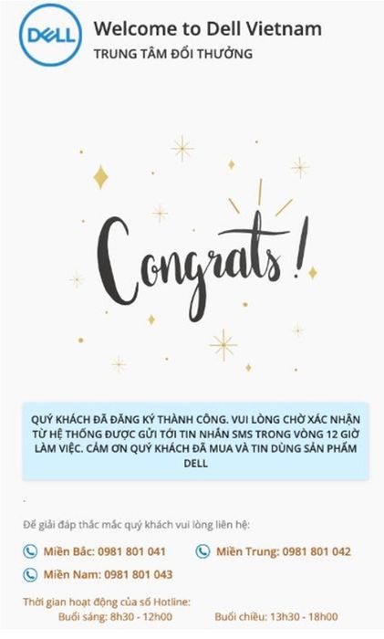 Step 5: After customers complete the steps to register information on the website www.doiquadell.com, DellTM customer service department verifies the validity of the information within 12 (twelve) hours: