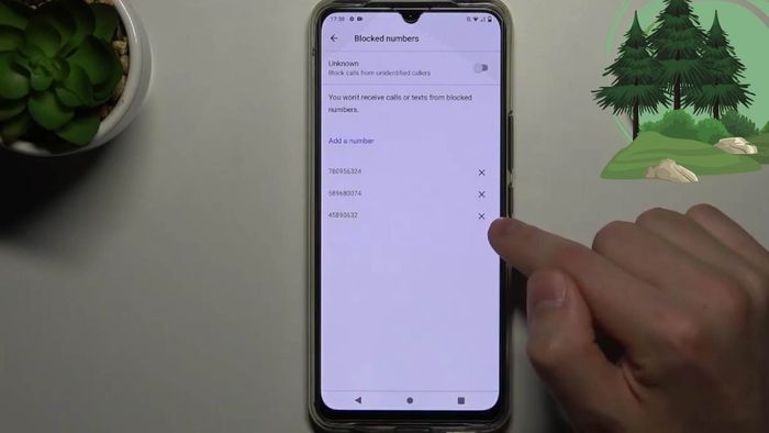 Now, you'll be taken to the interface of blocked phone numbers, where the screen displays a list of numbers blocked on your Vivo device. What you need to do is find the phone number you want to unblock, press the 'X' next to it to unblock the phone number on Vivo.