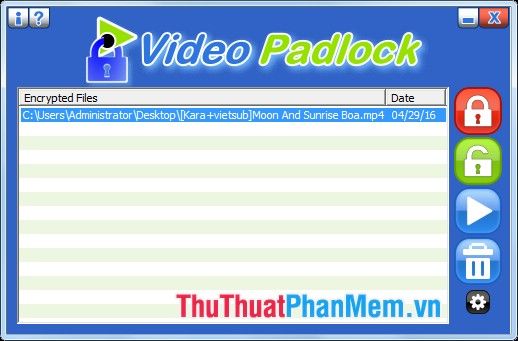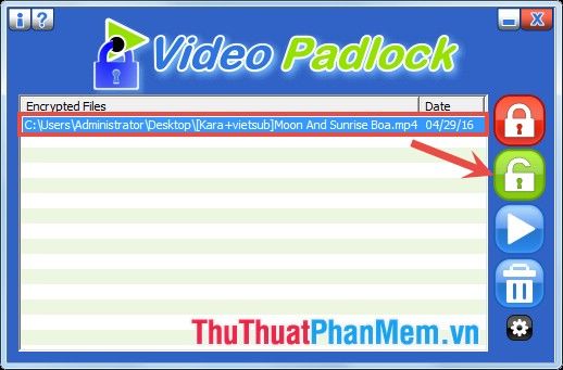 Step 4: To unlock an encrypted video, select it from the Encrypted Files section of Video Padlock and click on the green unlock icon ('Unlock or decrypt a file from the Video Padlock list'). The program will automatically unlock the video for you.