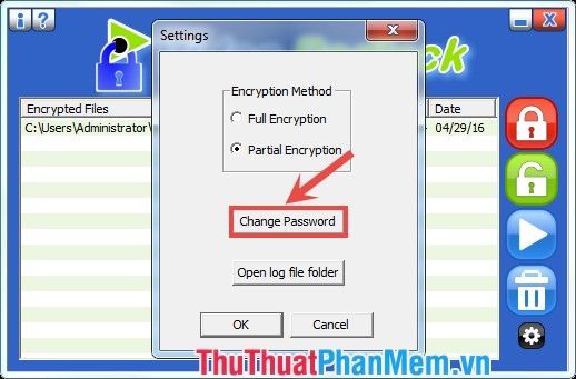 Here, you can change the encryption method under Encryption Method: Full encryption or Partial Encryption.