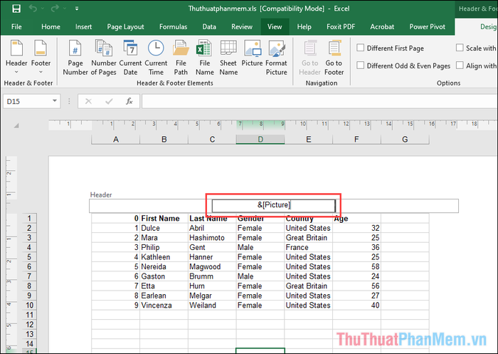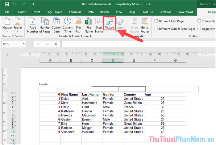 Step 1: In the Header & Footer mode you just opened, locate the Picture tab to add an image to the file.