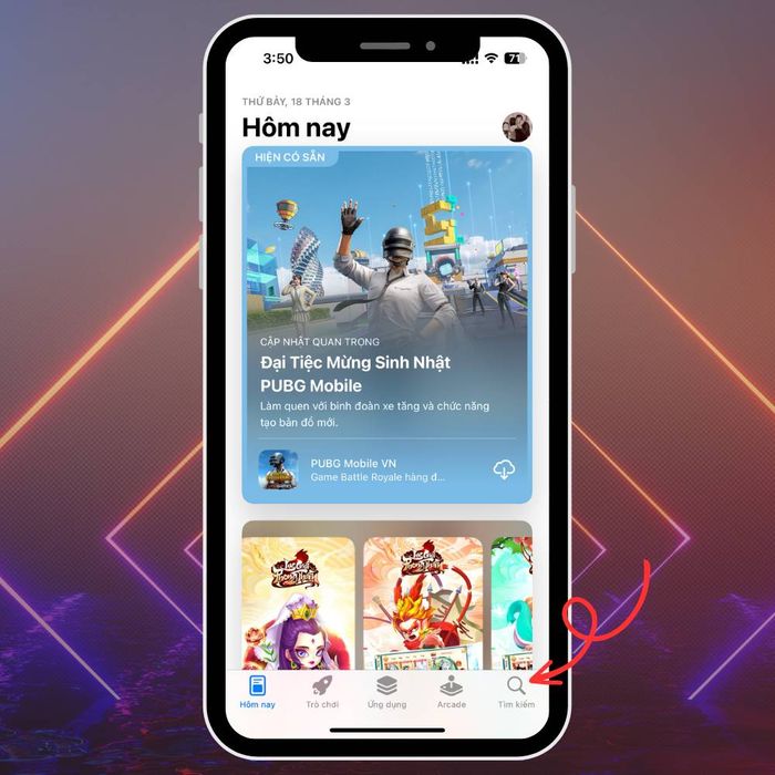 Step 1: First, access the App Store app on your device and select the Search option at the bottom right of the device.