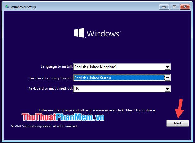 Step 1: In the Windows setup screen, simply press Next to continue.