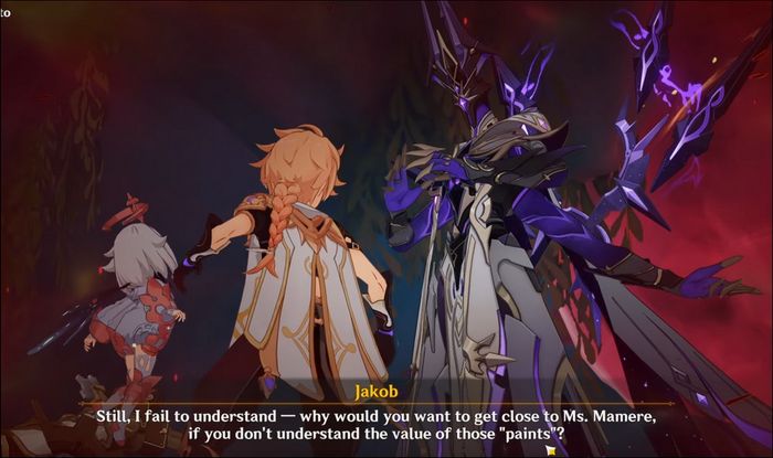 The Traveler and Paimon Encounter Jakob.Scientist Rene is completely dissolved after the ritual's conclusion. However, he doesn't perish. Instead, he merges with Lyris to become the 'Master,' the new leader of the Narzissenkreuz Society. Not content with just that, the Master continues to absorb the knowledge of many others to continually grow stronger, hoping to eventually absorb all of Fontaine's people, assisting the nation in overcoming the impending doom. Among those absorbed are Alain and Mary-Ann's foster father, Emmanuel Guillotin, as well as Marfisa – Fontaine's Representative Duelist at that time.