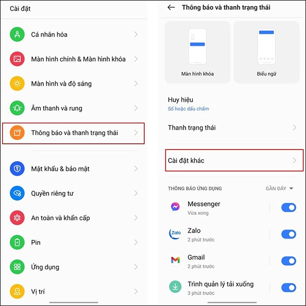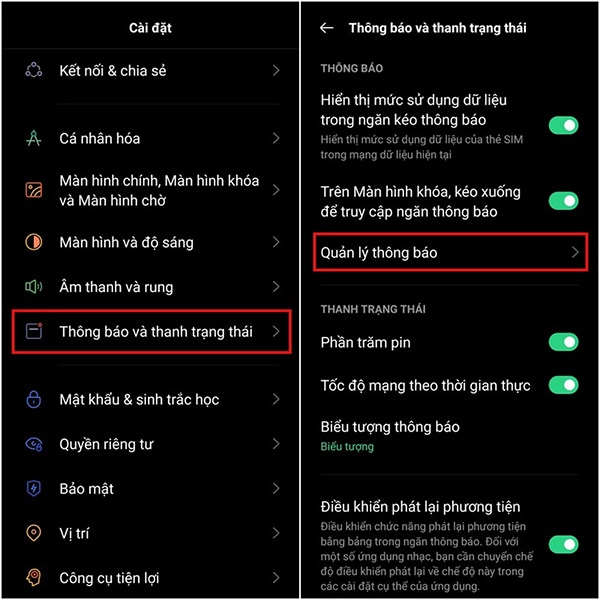 Step 1: On the Settings interface of your Oppo phone, press Settings and status bar, select Notification Management.