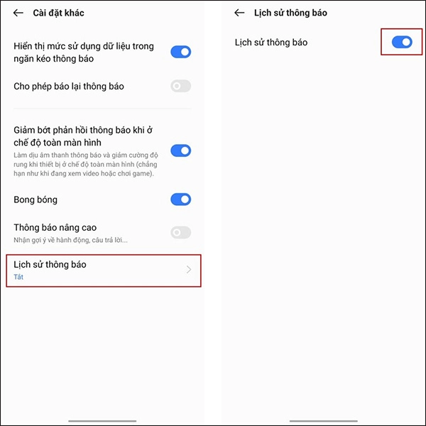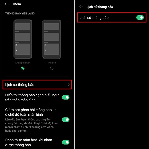 Step 2: Continue to select Notification history and activate this feature by sliding the switch to the right.