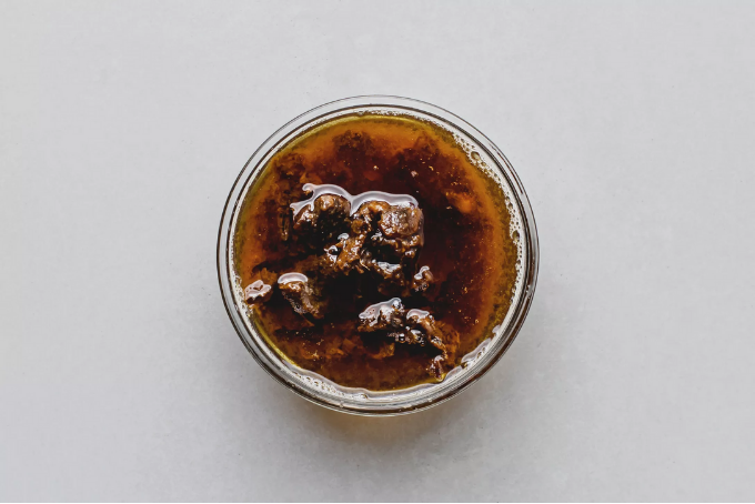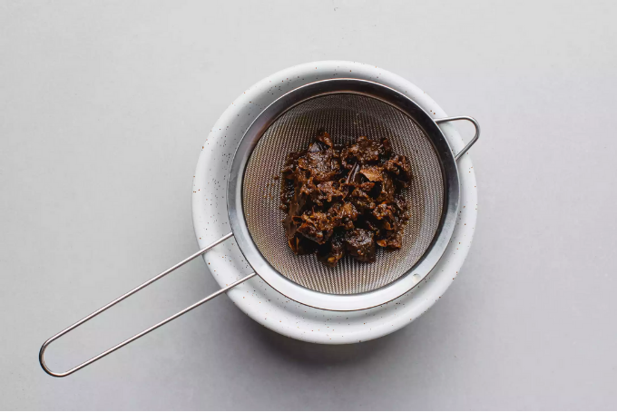 Soak tamarind in 1/2 cup of hot water for 10 minutes in a small bowl. Crush the tamarind to dissolve it in water. Strain the tamarind through a sieve to remove the pulp.