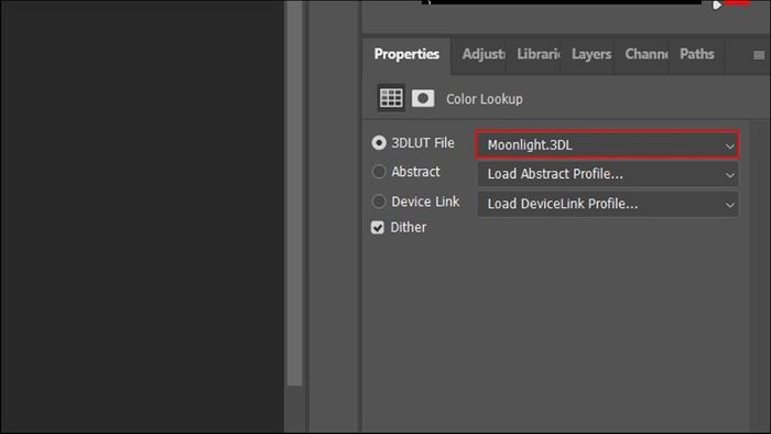 Step 7: After the transformation, not only daytime objects but also the nighttime sky becomes darker when covered by the Moonlight layer. Therefore, to maintain the color of the nighttime sky, click on the square icon with an arrow in the Properties panel (ensure you have selected the Color Lookup layer).