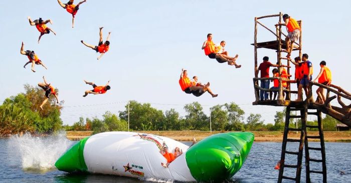 If you're with a large group of friends or a company for team-building, you'll surely enjoy games like Vietnamese kick volleyball, wild call, flying carpet, communal house, water fetching, tug of war, mock battle, water jumping, sack race, smart duck, and boat captain.