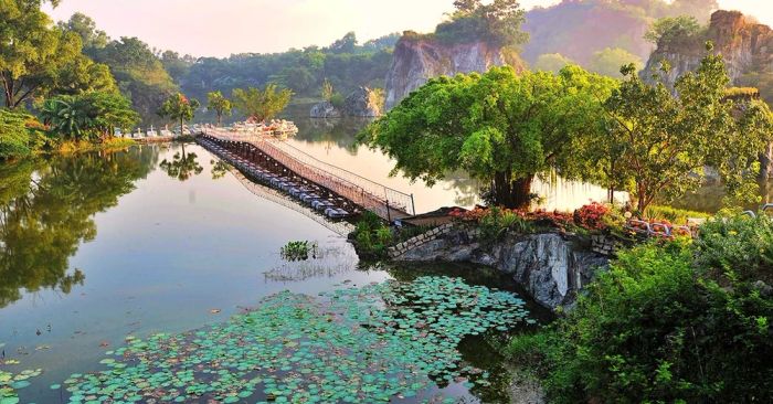 Dream Stream Park is one of the renowned recreational areas in Đồng Nai, often compared to a seaside paradise in the woods. Visit Dream Stream Park to indulge in refreshing stream baths, participate in engaging recreational activities, and freely capture moments at various dazzling corners.