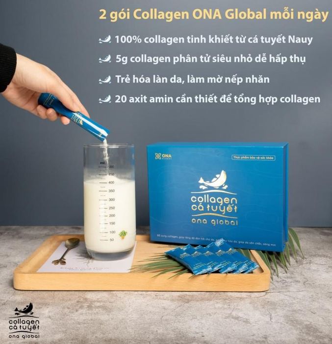 Ona Global Snowfish Collagen features a composition of 100% snowfish collagen directly imported from Norway. This collagen not only supplies a substantial 5000mg collagen dosage to the body but also aids in maintaining skin elasticity and radiance, delivering results 7 times more effective than conventional collagen.